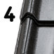 Čtyř-rohový spoj - Unikátní profilování spojovacích ploch mezi tabulemi zajišťuje jejich dokonalé překrytí bez viditelných spojů. Pro hladký, jednotný vzhled střechy.
